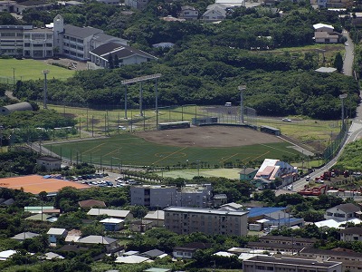 野球の外野部分となる人工芝部分には、フットサルコート3面とジュニアサッカーコート1面のラインが整備されています 予約及び利用方法等については八丈町教育委員会(04996-2-7071)までお問い合わせください