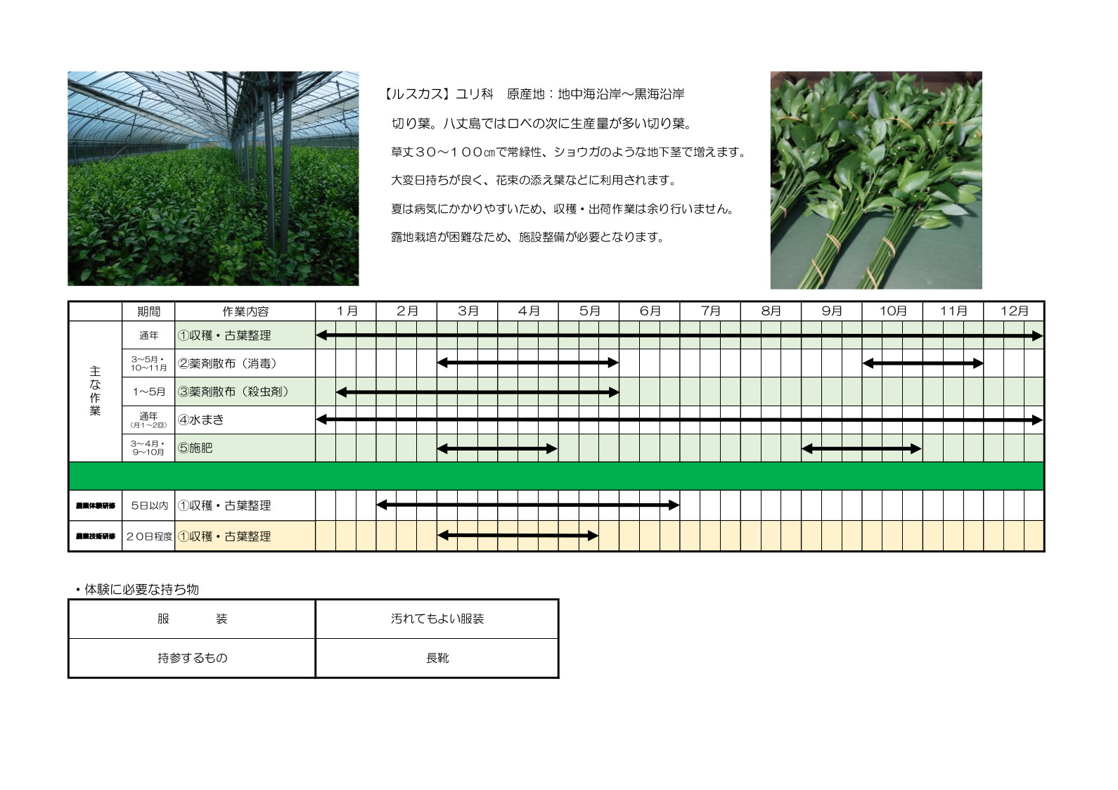 ルスカス 収穫・古葉整理・出荷調整 https://www.youtube.com/watch?v=rLC6ApAaf6I |