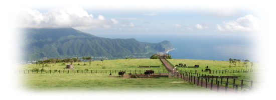 ふれあい牧場は、八丈富士の中腹に位置する畜産振興のための牧場です
