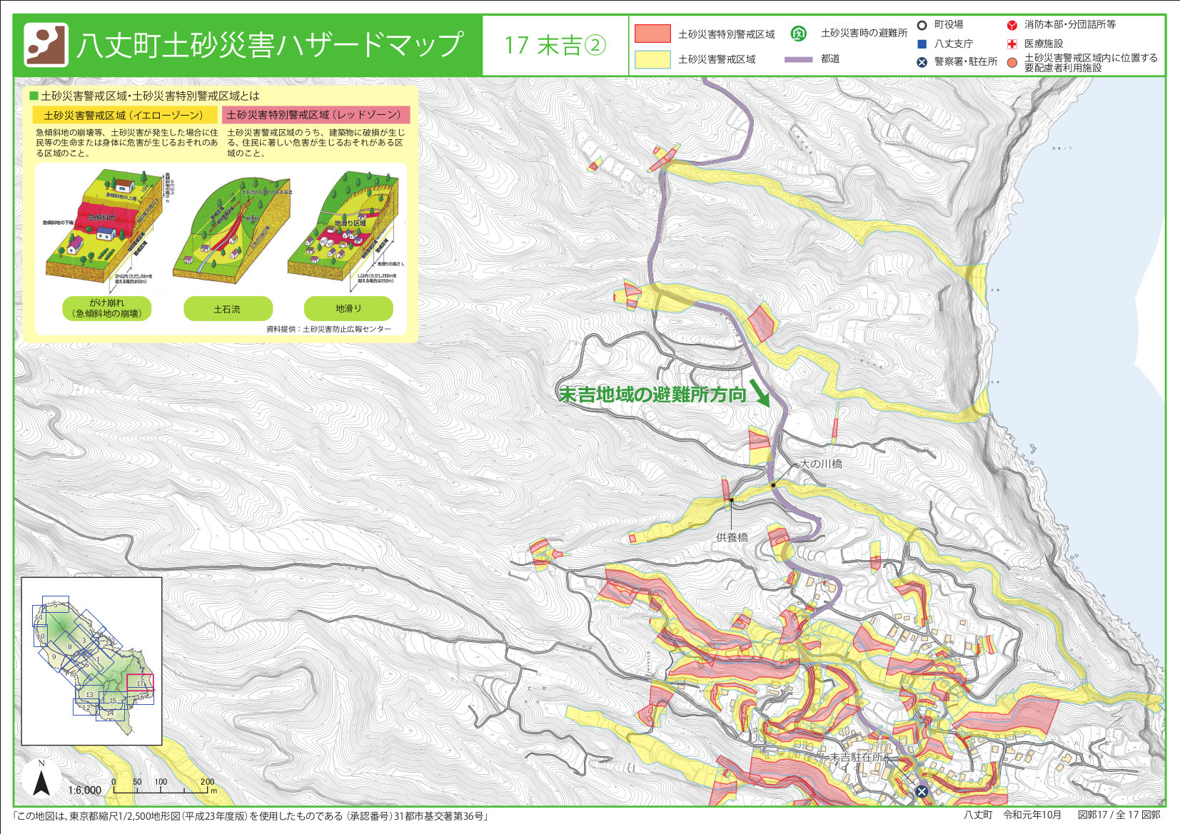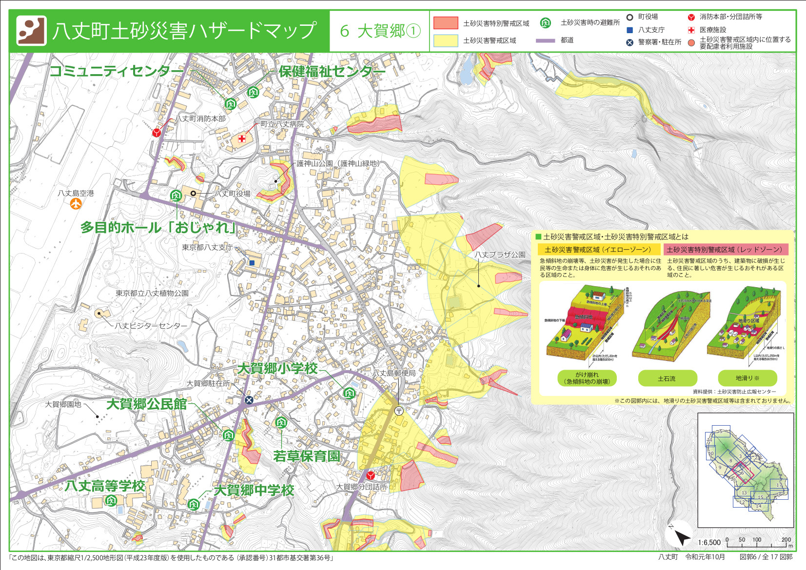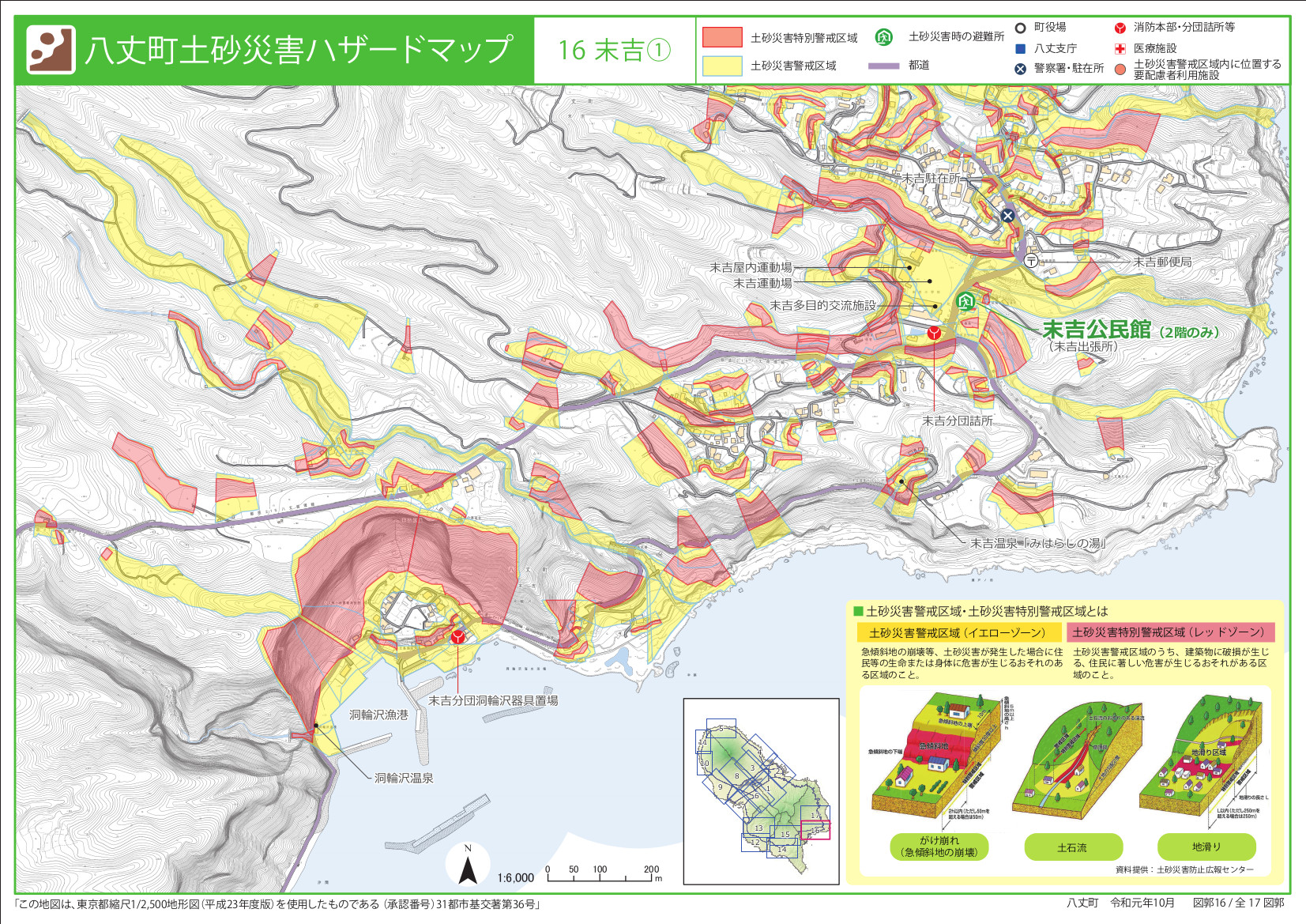 台風や大雨等による地盤の変化により、土砂災害の発生が予測される場合や実際に発生した場合に、住民の皆さんが避難などの適切な行動をとっていただくために「八丈町土砂災害ハザードマップ」を作成しました。