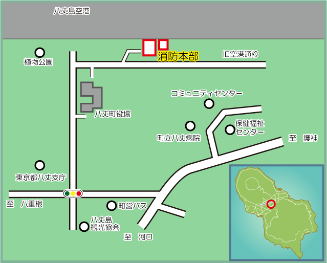 〒100-1401 東京都八丈島八丈町大賀郷2928番地2 八丈町消防本部 電話番号 04996-2-0119