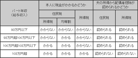 次に奥さん自身に税金がかかるかどうかということですが、住民税については、奥さんの年収が93万円超ですのでかかります。所得税については年収が103万円以下の人についてはかかりません