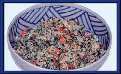 フライパンに油を熱し、みじん切りにしたあした葉を手早く炒め、だしの素で味をつける。