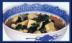 里芋が煮えたら、残りの味噌とあした葉を加える。