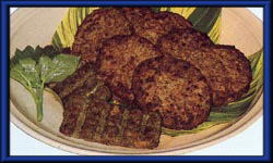 | 牛ひき肉 玉ねぎ A 調味料 パン粉 卵 脱脂粉乳 あしたば茶 塩 こしょう ナツメグ サラダ油 |