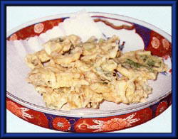 | ごぼう さつま芋 人参 あした葉 玉ねぎ A 天ぷら衣 小麦粉 砂糖 塩 卵 冷水 あげ油 |