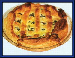 | 6 | 3のパイ皿に5を流し入れ、あらかじめ200度に温めておいたオーブンで30分焼く。 | ||||