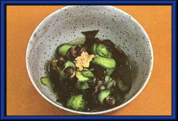 | 5 | しただみ、きゅうり、わかめにA割り酢を混ぜて絞り、B合わせ酢で和えて生姜をのせる。 | ||