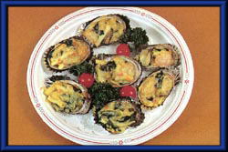 | 4 | グラタン皿(トコブシの殻)にバターを塗り、具を入れて上から、残りのホワイトソースをかけ、バターを1片のせ、ナチュラルチーズをのせる。 | ||||||