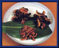 小さい形のウツボや大ウツボの尾の部分、中骨や背ビレを塩干しにしておく。