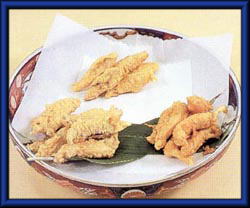 | 3 | A 天ぷら衣で衣をつくり2の材料を入れ、180度の油で揚げる。 | ||
