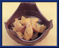 ブダイの上身は、細切りにし、塩と酒をふり下味をつけてから熱湯にさっとくぐらせ、すぐに冷ます。