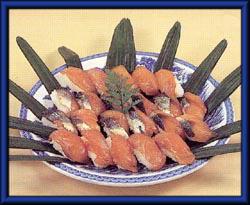 を混ぜ、寿司飯を作り、にぎって洋辛子をつける。