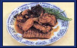 ウツボは3枚におろし、腹身に5mm間隔の切り目を入れる。