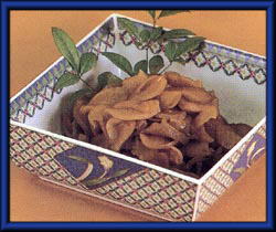 水を切って、うす切りにし油少々で炒め、しょうゆ、砂糖、みりん、唐辛子を好みの量を入れて水を少量入れ、昧をからめるように煮つける。