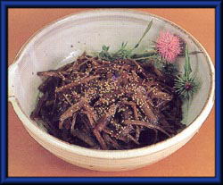 よく水洗いした根を5〜7分湯がく。4〜5分水につけてあく抜きする。